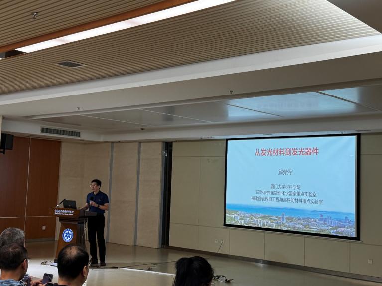 应功能晶体与器件全国重点实验室和福建省纳米材料重点实验室的邀请,厦门大学材料学院院长解荣军教授于427日访问福建物构所,并作了题为“从发光材料到发光器件”的学术报告。解荣军教授介绍了他所领导的研究团队在稀土掺杂氮化物、量子点和有机发光材料的设计、合成和性能优化等方面所开展的应用基础研究,并展示它们在固态照明(LEDLD)和先进显示(LCD、QLED、micro-LED)等发光器件中的应用,此外,解荣军教授还进一步展示了应力响应型发光材料的设计构筑,以及基于应力发光材料对应力动态分布成像和超声波频率探测的实现。讲座结束后,现场师生踊跃提问,就“荧光粉寿命优化”“激光材料产业化挑战”等问题与解教授展开深入探讨。解荣军教授结合自身科研经历,鼓励青年学子立足国家需求,探索材料科学的交叉创新。